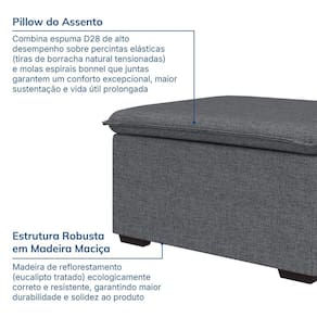 Descubra o conforto e a versatilidade do estofado modular Zen, que combina design moderno com funcionalidade para transformar qualquer ambiente. Sua estrutura em eucalipto de fontes renováveis garante durabilidade e reflete nosso compromisso com a sustentabilidade. As almofadas soltas no encosto, preenchidas com fibra 100% siliconada, oferecem um conforto excepcional e ajustável ergonômico se ajustando aos contornos do corpo. O assento, com espuma D28, percintas elásticas e molas Bonnel, assegura durabilidade e conforto por anos. Com 5 módulos distintos, o Zen se adapta a qualquer espaço, e o sistema de fixação entre módulos facilita a montagem e garante estabilidade. Disponível em diversas cores e acabamentos, ele se integra a qualquer estilo de decoração. Ambiente Principal: Sala de Estar Complexidade da Montagem: Baixa: pode ser montado por uma pessoa sozinha Cor: Grafite Cor do Produto: Grafite Escala de Brilho: Fosco Itens Inclusos: 1 Puff, Pés, Kit de Ferragens e Manual de Montagem Linha ou Coleção: Zen Manual de Montagem e Instalação: https://product-hub-prd.madeiramadeira.com.br/949506/documents/8db19dfd-e84e-4694-a4fe-5c9676da6788al2020Ibi20Modular2020vl02.pdf Material da Estrutura: Madeira Eucalipto Material dos Pés: PVC Necessita Montagem: Sim Origem do Produto: Nacional Peso: 9,4 kg Possui Baú: Não Possui Pés: 04 Possui Rodízio: Não Recomendações de Uso, Manutenção e Limpeza: Evitar exposição direta à luz solar, limpar com escova macia e aspirar o pó, não utilizar produtos químicos, removedores, alvejantes, etc. Evite exercer pressão excessiva sobre determinada partes do estofado, não utilizar para limpeza equipamentos a vapor de água. Sistema de Montagem: Pés, União e Almofada. Suporta Até (kg): 100 kg