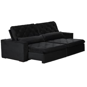 Sofá Modular Rio Branco 5 Lugares 2.50 MT Retrátil e Reclinável Veludo Nobre Sofatec - Preto