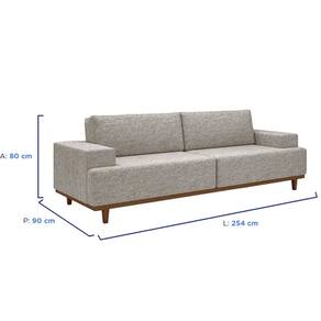 Dimensões: Altura 80 cm Largura: 254 cm Profundidade: 90 cm Peso: 87,34 kg Peso máximo suportado Assento: 100 kg Peso máximo suportado Braços: 27 kg