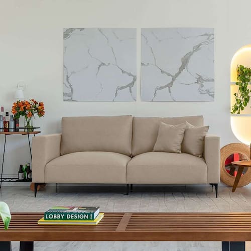 que tal o sofá na caixa ubbe? a mobly tem p em apresentar mais um produto da nossa marca de móveis exclusivos keva: o sofá na caixa ubbe. com proposta inovadora e design mais do que especial, ele traz uma solução prática para o momento do transporte e da montagem, sem deixar que nada do conforto ou da beleza se percam. embalado e entregue em 4 caixas compactas para facilitar o deslocamento, ele foi pensado para ser montado em sua casa, de forma fácil e sem necessidade de ferramentas especiais - as ferragens e o manual acompanham a embalagem e o encaixe das partes é simples para que qualquer pessoa consiga fazer.o tamanho de 170 cm é ideal para aconchegar a família, ainda mais porque ele conta com assento reforçado por molas e percintas elásticas, enquanto o encosto é preenchido com manta siliconada, que proporciona a comodidade perfeita. já os pés são em aço carbono e, junto à montagem inteligente e facilitada, formam um móvel sólido que não perde em nada para os que já vêm prontos da loja. o linho na cor bege garante o acabamento perfeito para um sofá moderno e de muito bom gosto, feito para destacar a decoração da sua sala de estar e embalar ótimos momentos de descanso e lazer. Marca: Keva