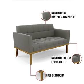 Sofá Namoradeira 2 Lugares Base De Madeira Castanho Elisa Suede D03 - Drossi Cor Grafite