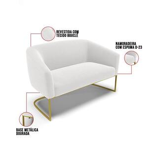 Sofá Namoradeira 2 Lugares Base Industrial Dourado Stella Bouclê D03 - D`Rossi - Branco