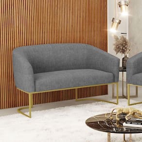 Sofá Namoradeira 2 Lugares Base Industrial Dourado Stella Linho D03 - D'rossi Cor A26 Grafite