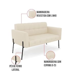 Sofá Namoradeira 2 Lugares Base Pé De Ferro Preto Elisa Linho D03 - D'rossi Cor A19 Bege