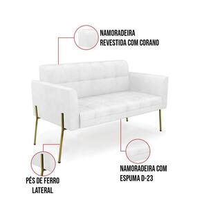 Sofá Namoradeira 2 Lugares Pé De Ferro Dourado Elisa Corano D03 - D'rossi Cor Branco