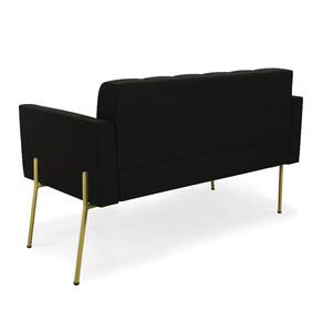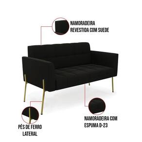 Sofá Namoradeira 2 Lugares Pé De Ferro Dourado Elisa Suede D03 - D'rossi Cor Preto