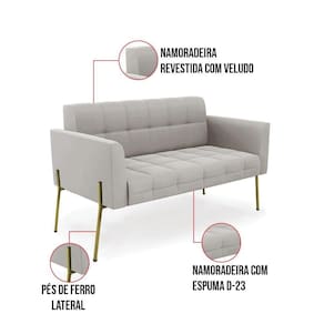 Você gosta de colecionar vários momentos memoráveis com sua família e amigos? Que tal recebê-los, com móveis de altíssima qualidade que só a D'Rossi tem? O Sofá Namoradeira Elisa é adequado para você! Seu design retrô é a grande tendência do momento. Pode ser utilizado em diversos espaços da casa, em salas, hall de entrada, quartos, cozinhas, varanda, sacada, escritório, dentre outros. Contém as seguintes características: A estrutura é feita Madeira de Eucalipto 100% de reflorestamento,Pés de Ferro Dourado que além de ser resistente e durável, suporta em média até 120 kg. Assento, encosto e braços, contém enchimento de espuma D-23 e é estofada em tecido Veludo, na cor Cinza, que oferece muito conforto e resistência ao sentar, com aquela sensação de maciez e aconchego. Possui também, detalhes de costura no encosto e assento, resultando em um acabamento impecável, conferindo muito mais valor e elegância ao seu espaço. Para complementar a decoração com esse lindo Sofá Namoradeira, a dica é utilizar mantas, almofadas ou vasinho de flor. E pronto, seu cantinho estará perfeito para descansar e relaxar! Aqui, você encontra várias opções, para que seus amigos e familiares se sintam acolhidos. Garanta já seu Sofá Namoradeira.