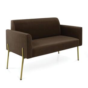 Sofá Namoradeira 2 Lugares Pé De Ferro Dourado Marisa Suede D03 - D'rossi Cor Marrom Rato
