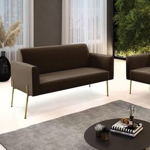 Sofá Namoradeira 2 Lugares Pé De Ferro Dourado Marisa Suede D03 Marrom Rato - Blush