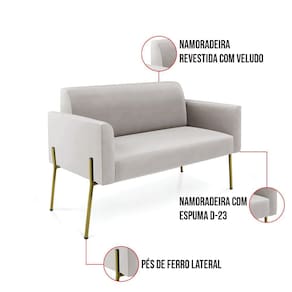 Todo mundo gosta de um ambiente bem decorado, e se for novidade melhor ainda não é mesmo? A D'Rossi, além de entregar beleza, qualidade e confiança aos clientes, ela dispõe das melhores opções em produtos, disponíveis no mercado! Portanto, se você quer um produto sofisticado, opte pelo Sofá Namoradeira 2 Lugares. Ele possui um design lindo e sofisticado, com pés de Ferro Lateral Dourado e revestimento em tecido Veludo Cinza, que harmonizam com qualquer ambiente. Esta mobília fica perfeita na sala de estar, recepções, mesa de jantar ou qualquer outro espaço que você queira decorar com estilo e bom gosto. Ela contém uma estrutura em madeira de reflorestamento eucalipto, que garante a resistência e a sustentabilidade do produto. Ela suporta até 120 kg de peso, podendo ser utilizada por pessoas de diferentes biotipos. Ela tem um acabamento reforçado e espuma de qualidade D-23, garantindo flexibilidade e conforto ao usuário. O Sofá Namoradeira Marisa é um produto de alta qualidade, beleza e funcionalidade. Ele é fácil de transportar, pois tem um peso leve e um tamanho compacto. O Sofá Namoradeira 2 Lugares Marisa é ideal, para dar aquele realce que seu ambiente precisa. Tenho certeza que esse móvel é a melhor compra que você irá fazer. Garanta já seu Sofá Namoradeira Marisa e se acomode da melhor maneira possível!