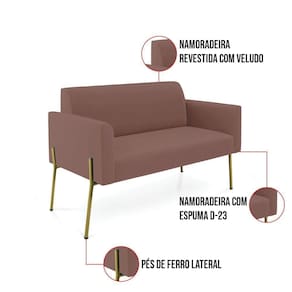 Todo mundo gosta de um ambiente bem decorado, e se for novidade melhor ainda não é mesmo? A D'Rossi, além de entregar beleza, qualidade e confiança aos clientes, ela dispõe das melhores opções em produtos, disponíveis no mercado! Portanto, se você quer um produto sofisticado, opte pelo Sofá Namoradeira 2 Lugares. Ele possui um design lindo e sofisticado, com pés de Ferro Lateral Dourado e revestimento em tecido Veludo Rosê, que harmonizam com qualquer ambiente. Esta mobília fica perfeita na sala de estar, recepções, mesa de jantar ou qualquer outro espaço que você queira decorar com estilo e bom gosto. Ela contém uma estrutura em madeira de reflorestamento eucalipto, que garante a resistência e a sustentabilidade do produto. Ela suporta até 120 kg de peso, podendo ser utilizada por pessoas de diferentes biotipos. Ela tem um acabamento reforçado e espuma de qualidade D-23, garantindo flexibilidade e conforto ao usuário. O Sofá Namoradeira Marisa é um produto de alta qualidade, beleza e funcionalidade. Ele é fácil de transportar, pois tem um peso leve e um tamanho compacto. O Sofá Namoradeira 2 Lugares Marisa é ideal, para dar aquele realce que seu ambiente precisa. Tenho certeza que esse móvel é a melhor compra que você irá fazer. Garanta já seu Sofá Namoradeira Marisa e se acomode da melhor maneira possível!Dimensões do Sofá Namoradeira: Altura total: 81 cm Largura total: 114 cm Profundidade total: 64 cm Altura do encosto: 36 cm Largura do assento: 96 cm Profundidade do assento: 48 cm Altura do chão ao assento: 45 cm Espessura do assento: 18 cm Tamanho dos pés: 30 cm Espessura do braço: 9 cm Peso: 21 kg Especificações do Produto Estrutura: Madeira Eucalipto Espuma: D-23 Tecido: Veludo Tipo de pés: Pés de Ferro Dourado Peso suportado: Até 120 Kg Garantia: 90 dias contra defeito de fabricação Montagem: O produto vai montado, apenas parafusar a base Instruções de limpeza: Utilizar um pano limpo e levemente úmido Você irá receber: 01 Sofá Namoradeira - Entregue em: 01 Volume