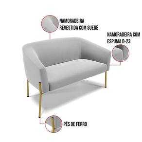 O Sofá Namoradeira 2 lugares Stella é uma peça que combina elegância, conforto e durabilidade. Este Sofá Namoradeira tem um design moderno e sofisticado, com pés de ferro lateral dourado e revestimento em tecido Suede Cinza, que harmonizam com qualquer ambiente. Ele é ideal para sala de estar, recepções, mesa de jantar ou qualquer outro espaço que você queira decorar com estilo e bom gosto. Ele tem uma estrutura em madeira de reflorestamento eucalipto, que garante a resistência e a sustentabilidade do produto. Ele suporta até 120 kg de peso, podendo ser utilizado por pessoas de diferentes biotipos. Ele tem um acabamento reforçado e espuma de qualidade D23, que oferece maciez e aconchego. Tem pés em aço carbono e pintura eletrostática, que protegem o produto contra corrosão e desgaste. Ele tem assento com persintas elásticas, que proporcionam flexibilidade e conforto. O Sofá Namoradeira Stella é um produto de alta qualidade, beleza e funcionalidade. Ele é fácil de transportar, pois tem um peso leve e um tamanho compacto. O Sofá Namoradeira Stella é um produto que vai fazer a diferença na sua decoração e no seu bem-estar. Ele vai trazer charme, conforto e durabilidade para o seu ambiente. Aproveite essa oferta e leve para casa um Sofá Namoradeirade qualidade por um preço incrível. Essa é a sua chance de ter um sofá Namoradeira maravilhoso por um preço imperdível. Corra e garanta seu Sofá Namoradeira 2 lugares antes que acabe o estoque!