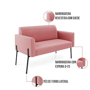 Sofá Namoradeira 2 Lugares Pé de Ferro Preto Marisa Suede D03 - D`Rossi - Rosê
