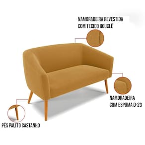 Tem novidades chegando por aqui! Olha só essa nossa inédita Namoradeira Stella Bouclê. Sim, as melhores opções em Namoradeira estão aqui! A Namoradeira Stella Bouclê é para todas as ocasiões, é ideal para você relaxar, assistir tv ou ler um livro, mantendo-o confortável ao longo do dia! Um estofado versátil, que foge do convencional pelo seu design e tecido luxuoso. Seu formato curvo, marcante e sofisticado, oferece conforto de forma excepcional, com aquela sensação de abraço, que deixa o coração quentinho! Desenvolvida com atenção aos detalhes, para atender todas suas expectativas e necessidades. Seu aspecto arredondado e anatômico, possibilita que a postura fique sempre alinhada, mantendo a coluna na posição correta. Ela dispõe de um acabamento impecável, revestida em Bouclê em tom Mostarda, um tecido maleável que além de ser muito bonito, é a grande tendência do momento, por ser uma lã mais refinada, quente, com toque suave e agradável, semelhante à textura natural da ovelha. Contém uma estrutura robusta, sua sustentação é dada pelos Pés Palito no tom Castanho, que garantem mais segurança e firmeza ao sentar-se. Já o enchimento é feito em espuma D-23 no encosto e assento, garantindo maior conforto ao usuário. Ah! Vale a pena lembrar que a Namoradeira Stella Bouclê, foi produzida em quantidades limitadas, para aqueles que procuram criar um visual diferenciado e exclusivo. Então, não deixe de aproveitar esse lançamento, hem! Leve a sua agora mesmo.