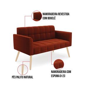 O Sofá Namoradeira 2 Lugares Elisa é uma mobília que combina elegância, conforto e durabilidade. Ele tem um design retrô e sofisticado, com Pés Palito Natural e revestimento em tecido Bouclê Terra, que harmonizam com qualquer ambiente. Ele é ideal para sala de estar, recepções, escritórios, cozinhas ou qualquer outro espaço que você queira decorar com estilo e bom gosto. Ele tem uma estrutura em madeira de reflorestamento eucalipto, que garante a resistência e a sustentabilidade do produto. Ele suporta até 180 kg de peso, podendo ser utilizada por pessoas de diferentes biotipos. Ele tem um acabamento reforçado e espuma de qualidade D23, que oferece maciez e aconchego. Ele contém detalhes de costura no encosto e assento, resultando em um acabamento impecável, conferindo muito mais valor e elegância ao produto. O Sofá Namoradeira Elisa é um móvel de alta qualidade, beleza e funcionalidade. Ele é fácil de transportar, pois tem um peso leve e um tamanho compacto. O Sofá Namoradeira Elisa é um produto que vai fazer a diferença na sua decoração e no seu bem-estar. Ele vai trazer charme, conforto e durabilidade para o seu ambiente. Aproveite essa oferta e leve para casa um Sofá Namoradeira de qualidade por um preço incrível. Essa é a sua chance de ter um Sofá Namoradeira maravilhoso por um preço imperdível. Corra e garanta o seu antes que acabe o estoque!