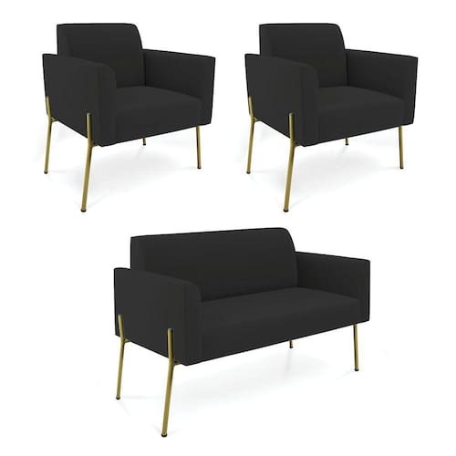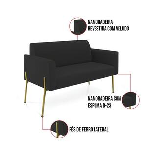 Todo mundo gosta de um ambiente bem decorado, e se for novidade melhor ainda não é mesmo? A D'Rossi, além de entregar beleza, qualidade e confiança aos clientes, ela dispõe das melhores opções em produtos, disponíveis no mercado! Portanto, se você quer um produto sofisticado, opte pelo Sofá Namoradeira e 2 Poltronas. Ele possui um design lindo e sofisticado, com pés de Ferro Lateral Dourado e revestimento em tecido Veludo Preto, que harmonizam com qualquer ambiente. Esta mobília fica perfeita na sala de estar, recepções, mesa de jantar ou qualquer outro espaço que você queira decorar com estilo e bom gosto. Ela contém uma estrutura em madeira de reflorestamento eucalipto, que garante a resistência e a sustentabilidade do produto. Ela suporta até 120 kg de peso, podendo ser utilizada por pessoas de diferentes biotipos. Ela tem um acabamento reforçado e espuma de qualidade D-23, garantindo flexibilidade e conforto ao usuário. O Sofá Namoradeira e 2 Poltronas Marisa é um produto de alta qualidade, beleza e funcionalidade. Ele é fácil de transportar, pois tem um peso leve e um tamanho compacto. O Sofá Namoradeira e 2 Poltronas Marisa é ideal, para dar aquele realce que seu ambiente precisa. Tenho certeza que esse móvel é a melhor compra que você irá fazer. Garanta já seu Sofá Namoradeira e 2 Poltronas Marisa e se acomode da melhor maneira possível!