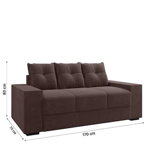 MEDIDAS:: A = 80 cm L = 170 cm P = 75 cm | PESO:: 45 Kg | PESO SUPORTADO:: 100 Kg Por Assento | MODELO:: Sofá 1,70m 3 Lugares Ibiza Namoradeira Suede | MARCA:: Selmer | TECIDO:: Suede | PERCINTAS:: Elásticas | MATERIAL DA ESTRUTURA:: Madeira de Eucalipto | MATERIAL DO ASSENTO:: Espuma | DENSIDADE DE ESPUMA DO ASSENTO:: D23 | QUANTIDADE DE LUGARES:: 3 | MATERIAL DO ENCOSTO:: Almofadas com Fibras e Flocos | POSSUI ENCOSTO REMOVÍVEL:: Sim | BRAÇOS:: Fibras e Flocos | DENSIDADE DE ESPUMA DO BRAÇO:: D20 | PÉS:: Em PVC | POSSUI RODÍZIOS:: Não | VALE A PENA SABER:: A tonalidade de cor pode variar de acordo com o lote do fabricante. | CONTEÚDO DA EMBALAGEM:: 2 Volumes | GARANTIA:: 3 Meses | AVISO:: A Esplanada Móveis se responsabiliza pela entrega dos produtos adquiridos até a porta de entrada ou portaria do endereço indicado, se a portaria do condomínio permitir, as entregas são efetuadas no piso térreo e é de responsabilidade do cliente. | Altura: 80 | É com chaise: não | É de canto: não | É reclinável: não | É sofá-cama: não | Inclui manual de montagem: sim | Largura: 170 | Profundidade: 75 | Quantidade de caixas de embalagem: 2 | Quantidade de lugares: 3 | Cor: Marrom