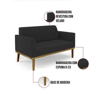 Sofá Namoradeira Base De Madeira Fixa Castanho Marisa Veludo Preto D03 - D?rossi