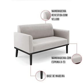 Todo mundo gosta de um ambiente bem decorado, e se for novidade melhor ainda não é mesmo? A DRossi, além de entregar beleza, qualidade e confiança aos clientes, ela dispõe das melhores opções em produtos, disponíveis no mercado! Se você quer um produto sofisticado, opte pelo Sofá Namoradeira Marisa. Ele dispõe de um tom lindo, uma cor leve, neutra e delicada que combina com qualquer estilo de decoração. Esta mobília fica perfeita na sala, escritório, quarto, varanda coberta e onde mais preferir! Sua estrutura é feita em madeira reforçada de eucalipto proveniente de reflorestamento. No assento/encosto contém um revestimento no tecido Veludo, com estofamento em espuma prorelax D-23, garantindo maior conforto ao usuário. A sustentação da peça é dada pela Base de Madeira Preto, garantindo uma resistência melhor, para relaxar o dia todo com mais comodidade. O Sofá Namoradeira Marisa é ideal, para dar aquele realce que seu ambiente precisa. Tenho certeza que, esse móvel é a melhor compra que você irá fazer. Garanta já seu Sofá Namoradeira e se acomode da melhor maneira possível!