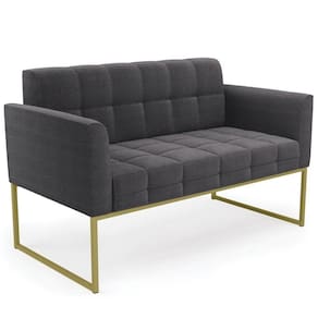 Querida por muitos pela beleza e conforto que proporciona, sua versatilidade dá a liberdade de poder usar na sua Sala De Estar, recepção e onde mais desejar! Você vai adorar o Sofá Namoradeira Base Industrial Dourado Ana Bouclé Grafite, da Ibiza!