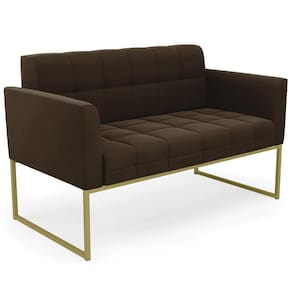 Querida por muitos pela beleza e conforto que proporciona, sua versatilidade dá a liberdade de poder usar na sua Sala De Estar, recepção e onde mais desejar! Você vai adorar o Sofá Namoradeira Base Industrial Dourado Ana Suede Marrom, da Ibiza!