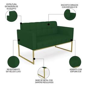 Querida por muitos pela beleza e conforto que proporciona, sua versatilidade dá a liberdade de poder usar na sua Sala De Estar, recepção e onde mais desejar! Você vai adorar o Sofá Namoradeira Base Industrial Dourado Ana Veludo Luxo Verde, da Ibiza!