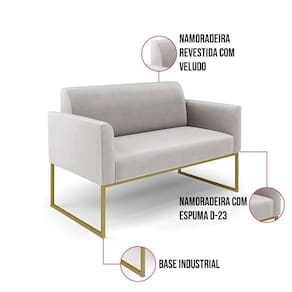 Sofá Namoradeira Base Industrial Dourado Marisa Veludo D03 - D\\'rossi Cor Cinza