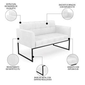 Querida por muitos pela beleza e conforto que proporciona, sua versatilidade dá a liberdade de poder usar na sua Sala De Estar, recepção e onde mais desejar! Você vai adorar o Sofá Namoradeira Base Industrial Preto Ana Sintético PU Branco, da Ibiza!