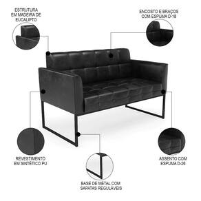 Querida por muitos pela beleza e conforto que proporciona, sua versatilidade dá a liberdade de poder usar na sua Sala De Estar, recepção e onde mais desejar! Você vai adorar o Sofá Namoradeira Base Industrial Preto Ana Sintético PU Preto, da Ibiza!
