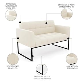 Querida por muitos pela beleza e conforto que proporciona, sua versatilidade dá a liberdade de poder usar na sua Sala De Estar, recepção e onde mais desejar! Você vai adorar o Sofá Namoradeira Base Industrial Preto Ana Veludo Bege, da Ibiza!