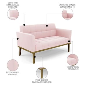 Querida por muitos pela beleza e conforto que proporciona, sua versatilidade dá a liberdade de poder usar na sua Sala De Estar, recepção e onde mais desejar! Você vai adorar o Sofá Namoradeira Base Madeira Castanho Ana Suede Rosa Bebê, da Ibiza!