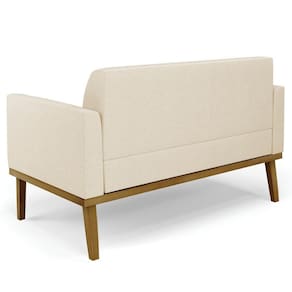 Sofá Namoradeira Base Madeira Castanho Maressa Linho Bege - Ibiza