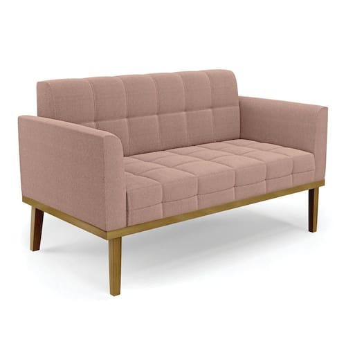 Sofá Namoradeira Base Madeira Fixa Castanho Elisa Bouclê Rosê D03 - D`rossi - Rosa