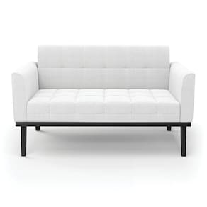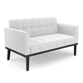 Sofá Namoradeira Base Madeira Fixa Preto Elisa Bouclê D03 - D'rossi Cor Off White