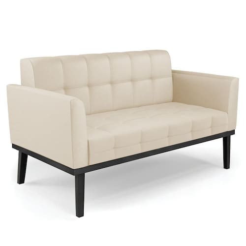 Querida por muitos pela beleza e conforto que proporciona, sua versatilidade dá a liberdade de poder usar na sua Sala De Estar, recepção e onde mais desejar! Você vai adorar o Sofá Namoradeira Base Madeira Preto Ana Sintético Bege, da Ibiza!