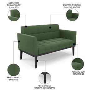 Querida por muitos pela beleza e conforto que proporciona, sua versatilidade dá a liberdade de poder usar na sua Sala De Estar, recepção e onde mais desejar! Você vai adorar o Sofá Namoradeira Base Madeira Preto Ana Suede Verde, da Ibiza!