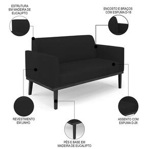 Querida por muitos pela beleza e conforto que proporciona, sua versatilidade dá a liberdade de poder usar na sua Sala De Estar, recepção e onde mais desejar! Você vai adorar o Sofá Namoradeira Base Madeira Preto Maressa Linho Preto, da Ibiza!