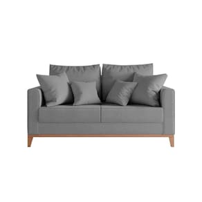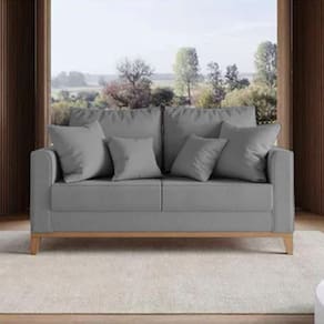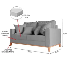 IMAGENS MERAMENTE ILUSTRATIVAS REALIZADO EDIÇÃO, PODENDO HAVER UMA PEQUENA VARIAÇÃO DE COR DEPENDENDO DE CADA TELA OU MONITOR.Sofà Namoradeira Beny Base em Madeira MaciÃa Linho Cinza