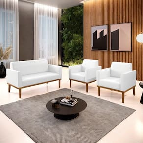 Todo mundo gosta de um ambiente bem decorado, e se for melhor ainda não é mesmo? A D?Rossi, além de entregar beleza, qualidade e confiança aos clientes, ela dispõe das melhores opções em produtos, disponíveis no mercado! Se você quer um produto sofisticado, opte pelo Sofá Namoradeira com Poltrona Marisa. Este kit dispõe de um tom lindo no Branco, uma cor leve, neutra e delicada que combina com qualquer estilo de decoração. Ele fica perfeito na sala, escritório, quarto, varanda coberta e onde mais preferir! Sua estrutura é feita em madeira reforçada de eucalipto proveniente de reflorestamento. No assento/encosto contém um revestimento no tecido Corano, com estofamento em espuma prorelax D-23, garantindo maior conforto ao usuário. A sustentação da peça é dada pela Base de Madeira Fixa Castanho, garantindo uma resistência melhor, para relaxar o dia todo com mais comodidade. O Sofá Namoradeira com Poltrona Marisa é ideal, para dar aquele realce que seu ambiente precisa. Tenho certeza que, esse móvel é a melhor compra que você irá fazer. Garanta já seu Kit e se acomode da melhor maneira possível! Dimensões da Sofá Namoradeira: Altura total: 81 cm Largura total: 114 cm Profundidade total: 64 cm Altura do encosto: 36 cm Largura do assento: 96 cm Profundidade do assento: 48 cm Altura do chão ao assento: 45 cm Espessura do assento: 18 cm Tamanho dos pés: 30 cm Espessura do braço: 9 cm Peso: 24 kg Dimensões da Poltrona: Altura total: 81 cm Largura total: 64 cm Profundidade total: 64 cm Altura do encosto: 36 cm Largura do assento: 47 cm Profundidade do assento: 48 cm Altura do chão ao assento: 45 cm Espessura do assento: 18 cm Tamanho dos pés: 30 cm Espessura do braço: 9 cm Peso: 18 kg Especificações do Produto Estrutura: Madeira Eucalipto Espuma: D-23 Tecido: Corano Tipo de pés: Base de Madeira Fixa Castanho Peso suportado: Até 120 Kg Garantia: 90 dias contra de fabricação Montagem: O produto vai montado, apenas parafusar a base Instruções de limpeza: Utilizar um pano limpo e levemente úmido Você irá receber: 01 Sofá Namoradeira e 02 Poltronas - Entregue em: 03 Volumes Observações Relevantes - Todos os produtos vão embalados com total ; - As cores dos produtos podem sofrer alterações dependendo do seu monitor; - Para futuras compras, não garantimos a mesma tonalidade de cor, pois existe variação a cada lote do fabricante do tecido; - As imagens são meramente ilustrativas, não acompanham objetos de decoração e eletros; - Confira as dimensões do produto no momento da compra e certifique-se de que passará normalmente por escadas, elevadores, portas e corredores; - Importante: Por se tratar de estofado as medidas podem ter uma pequena variação em até 3 cm; - Não nos responsabilizamos no ato da por montagens, desmontagens, instalações de produtos; - Não nos responsabilizamos no ato da por subir escadas, elevadores, nem utilização de guinchos ou equipamentos similares para acesso a pisos superiores em apartamentos; - A do produto é realizada em todo território , até onde as rodovias alcançam, fluviais ou aéreas devem ser cotadas a parte; - Observando as orientações acima, evita-se futuros desagrados ou imprevistos com a do produto. Havendo despesas adicionais, serão de responsabilidade do cliente;