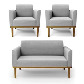 Todo mundo gosta de um ambiente bem decorado, e se for melhor ainda não é mesmo? A D?Rossi, além de entregar beleza, qualidade e confiança aos clientes, ela dispõe das melhores opções em produtos, disponíveis no mercado! Se você quer um produto sofisticado, opte pelo Sofá Namoradeira com Poltrona Marisa. Este kit dispõe de um tom lindo, uma cor leve, neutra e delicada que combina com qualquer estilo de decoração. Ele fica perfeito na sala, escritório, quarto, varanda coberta e onde mais preferir! Sua estrutura é feita em madeira reforçada de eucalipto proveniente de reflorestamento. No assento/encosto contém um revestimento no tecido Suede, com estofamento em espuma prorelax D-23, garantindo maior conforto ao usuário. A sustentação da peça é dada pela Base de Madeira Fixa Castanho, garantindo uma resistência melhor, para relaxar o dia todo com mais comodidade. O Sofá Namoradeira com Poltrona Marisa é ideal, para dar aquele realce que seu ambiente precisa. Tenho certeza que, esse móvel é a melhor compra que você irá fazer. Garanta já seu Kit e se acomode da melhor maneira possível! Dimensões da Sofá Namoradeira: Altura total: 81 cm Largura total: 114 cm Profundidade total: 64 cm Altura do encosto: 36 cm Largura do assento: 96 cm Profundidade do assento: 48 cm Altura do chão ao assento: 45 cm Espessura do assento: 18 cm Tamanho dos pés: 30 cm Espessura do braço: 9 cm Peso: 24 kg Dimensões da Poltrona: Altura total: 81 cm Largura total: 64 cm Profundidade total: 64 cm Altura do encosto: 36 cm Largura do assento: 47 cm Profundidade do assento: 48 cm Altura do chão ao assento: 45 cm Espessura do assento: 18 cm Tamanho dos pés: 30 cm Espessura do braço: 9 cm Peso: 18 kg Especificações do Produto Estrutura: Madeira Eucalipto Espuma: D-23 Tecido: Suede Tipo de pés: Base de Madeira Fixa Castanho Peso suportado: Até 120 Kg Garantia: 90 dias contra de fabricação Montagem: O produto vai montado, apenas parafusar a base Instruções de limpeza: Utilizar um pano limpo e levemente úmido Você irá receber: 01 Sofá Namoradeira e 02 Poltronas - Entregue em: 03 Volumes Observações Relevantes - Todos os produtos vão embalados com total ; - As cores dos produtos podem sofrer alterações dependendo do seu monitor; - Para futuras compras, não garantimos a mesma tonalidade de cor, pois existe variação a cada lote do fabricante do tecido; - As imagens são meramente ilustrativas, não acompanham objetos de decoração e eletros; - Confira as dimensões do produto no momento da compra e certifique-se de que passará normalmente por escadas, elevadores, portas e corredores; - Importante: Por se tratar de estofado as medidas podem ter uma pequena variação em até 3 cm; - Não nos responsabilizamos no ato da por montagens, desmontagens, instalações de produtos; - Não nos responsabilizamos no ato da por subir escadas, elevadores, nem utilização de guinchos ou equipamentos similares para acesso a pisos superiores em apartamentos; - A do produto é realizada em todo território , até onde as rodovias alcançam, fluviais ou aéreas devem ser cotadas a parte; - Observando as orientações acima, evita-se futuros desagrados ou imprevistos com a do produto. Havendo despesas adicionais, serão de responsabilidade do cliente;