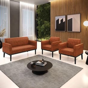 Você irá receber: 01 Sofá Namoradeira e 02 Poltronas - Entregue em: 03 Volumes