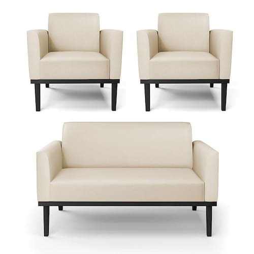 Você irá receber: 01 Sofá Namoradeira e 02 Poltronas - Entregue em: 03 Volumes