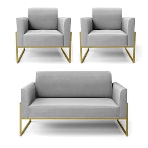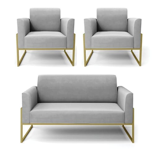 Você irá receber: 01 Sofá Namoradeira e 02 Poltronas - Entregue em: 03 Volumes