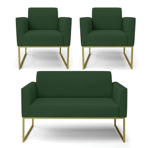 Todo mundo gosta de um ambiente bem decorado, e se for novidade melhor ainda não é mesmo? A D'Rossi, além de entregar beleza, qualidade e confiança aos clientes, ela dispõe das melhores opções em produtos, disponíveis no mercado! Se você quer um produto sofisticado, opte pelo Sofá Namoradeira com 2 Poltronas Marisa. Este kit dispõe de um tom lindo no Verde, uma cor leve, neutra e delicada que combina com qualquer estilo de decoração. Ele fica perfeito na sala, escritório, quarto, varanda coberta e onde mais preferir! Sua estrutura é feita em madeira reforçada de eucalipto proveniente de reflorestamento. No assento/encosto contém um revestimento no tecido Veludo, com estofamento em espuma prorelax D-23, garantindo maior conforto ao usuário. A sustentação da peça é dada pelos Base Industrial Dourado, garantindo uma resistência melhor, para relaxar o dia todo com mais comodidade. O Sofá Namoradeira com 2 Poltronas Marisa é ideal, para dar aquele realce que seu ambiente precisa. Tenho certeza que, esse móvel é a melhor compra que você irá fazer. Garanta já seu Kit e se acomode da melhor maneira possível!