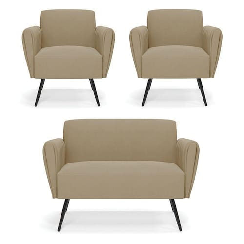 Sofá Namoradeira Com 2 Poltronas Pés Palito De Ferro Bruna Suede Marrom Rato - D\`rossi