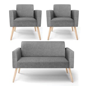 Sofá Namoradeira Com 2 Poltronas Pés Palito Natural Marisa Linho Grafite A26 D03 - D'rossi