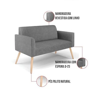 Sofá Namoradeira Com 2 Poltronas Pés Palito Natural Marisa Linho Grafite A26 D03 - D`rossi - Blush