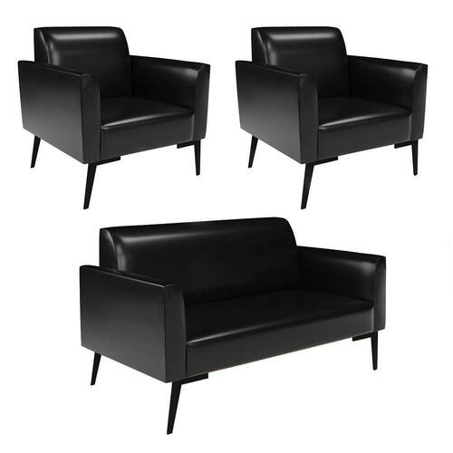 Sofá Namoradeira Com 2 Poltronas Pés Villach Marisa Corano Preto D03 - D?rossi