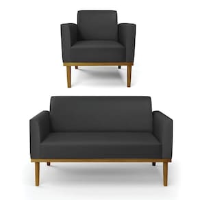 Todo mundo gosta de um ambiente bem decorado, e se for melhor ainda não é mesmo? A D?Rossi, além de entregar beleza, qualidade e confiança aos clientes, ela dispõe das melhores opções em produtos, disponíveis no mercado! Se você quer um produto sofisticado, opte pelo Sofá Namoradeira com Poltrona Marisa. Este kit dispõe de um tom lindo no Preto, uma cor leve, neutra e delicada que combina com qualquer estilo de decoração. Ele fica perfeito na sala, escritório, quarto, varanda coberta e onde mais preferir! Sua estrutura é feita em madeira reforçada de eucalipto proveniente de reflorestamento. No assento/encosto contém um revestimento no tecido Corino, com estofamento em espuma prorelax D-23, garantindo maior conforto ao usuário. A sustentação da peça é dada pela Base de Madeira Fixa Castanho, garantindo uma resistência melhor, para relaxar o dia todo com mais comodidade. O Sofá Namoradeira com Poltrona Marisa é ideal, para dar aquele realce que seu ambiente precisa. Tenho certeza que, esse móvel é a melhor compra que você irá fazer. Garanta já seu Kit e se acomode da melhor maneira possível! Dimensões da Sofá Namoradeira: Altura total: 81 cm Largura total: 114 cm Profundidade total: 64 cm Altura do encosto: 36 cm Largura do assento: 96 cm Profundidade do assento: 48 cm Altura do chão ao assento: 45 cm Espessura do assento: 18 cm Tamanho dos pés: 30 cm Espessura do braço: 9 cm Peso: 24 kg Dimensões da Poltrona: Altura total: 81 cm Largura total: 64 cm Profundidade total: 64 cm Altura do encosto: 36 cm Largura do assento: 47 cm Profundidade do assento: 48 cm Altura do chão ao assento: 45 cm Espessura do assento: 18 cm Tamanho dos pés: 30 cm Espessura do braço: 9 cm Peso: 18 kg Especificações do Produto Estrutura: Madeira Eucalipto Espuma: D-23 Tecido: Corino Tipo de pés: Base de Madeira Fixa Castanho Peso suportado: Até 120 Kg Garantia: 90 dias contra de fabricação Montagem: O produto vai montado, apenas parafusar a base Instruções de limpeza: Utilizar um pano limpo e levemente úmido Você irá receber: 01 Sofá Namoradeira e 01 Poltrona - Entregue em: 02 Volumes Observações Relevantes - Todos os produtos vão embalados com total ; - As cores dos produtos podem sofrer alterações dependendo do seu monitor; - Para futuras compras, não garantimos a mesma tonalidade de cor, pois existe variação a cada lote do fabricante do tecido; - As imagens são meramente ilustrativas, não acompanham objetos de decoração e eletros; - Confira as dimensões do produto no momento da compra e certifique-se de que passará normalmente por escadas, elevadores, portas e corredores; - Importante: Por se tratar de estofado as medidas podem ter uma pequena variação em até 3 cm; - Não nos responsabilizamos no ato da por montagens, desmontagens, instalações de produtos; - Não nos responsabilizamos no ato da por subir escadas, elevadores, nem utilização de guinchos ou equipamentos similares para acesso a pisos superiores em apartamentos; - A do produto é realizada em todo território , até onde as rodovias alcançam, fluviais ou aéreas devem ser cotadas a parte; - Observando as orientações acima, evita-se futuros desagrados ou imprevistos com a do produto. Havendo despesas adicionais, serão de responsabilidade do cliente;