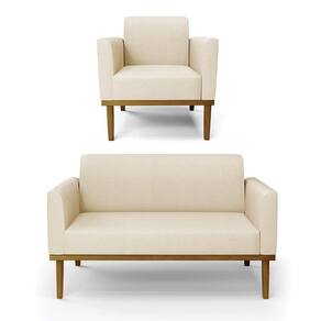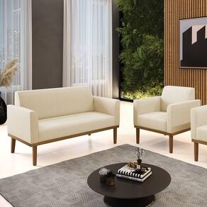Sofá Namoradeira Com Poltrona Base De Madeira Fixa Castanho Marisa Linho D03 - D?rossi Cor A19 Bege